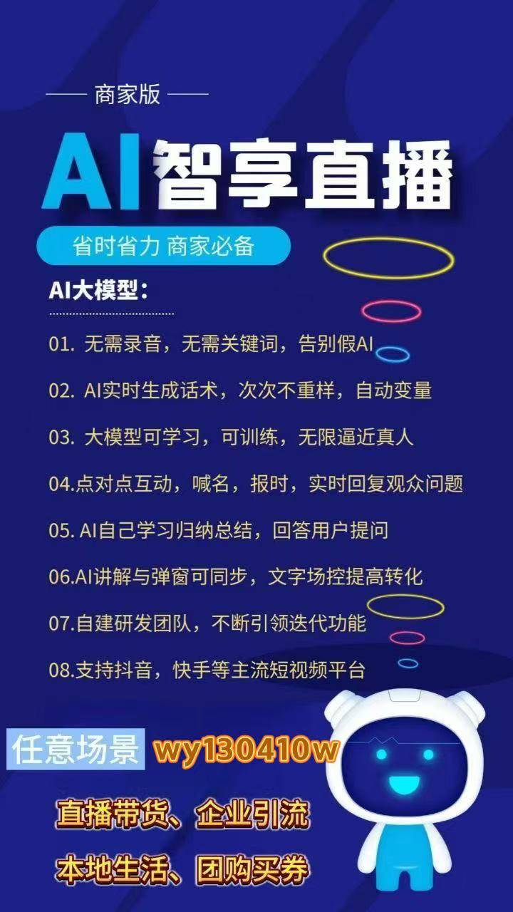 而实时数据交互技术打通了“数据-内容”的闭环,让直播从“单向输出”变成“动态适配”:库存仅剩5件时自动触发“库存告急”线岁观众占比骤增时切换活泼话术风格,根据不同时段观众画像调整商品排序,使转化率较传统录播提升3倍以上。这三大技术的协同,让智享AI三代跳出了“循环播放素材”的初级模式,实现了“数据驱动内容”的智能运营。