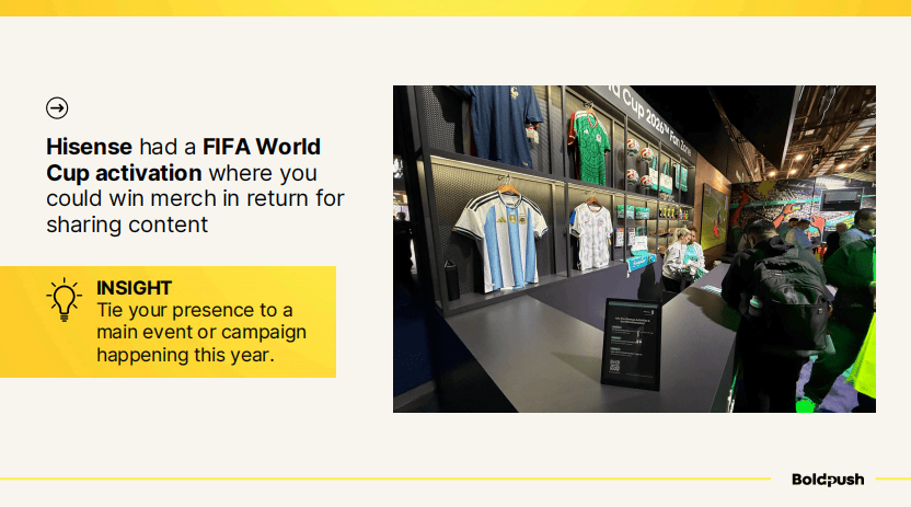 这个策略的洞察值得借鉴:将你的展会存在与年度重大事件或营销活动挂钩。2026年恰逢世界杯年,海信巧妙地利用了这一点。