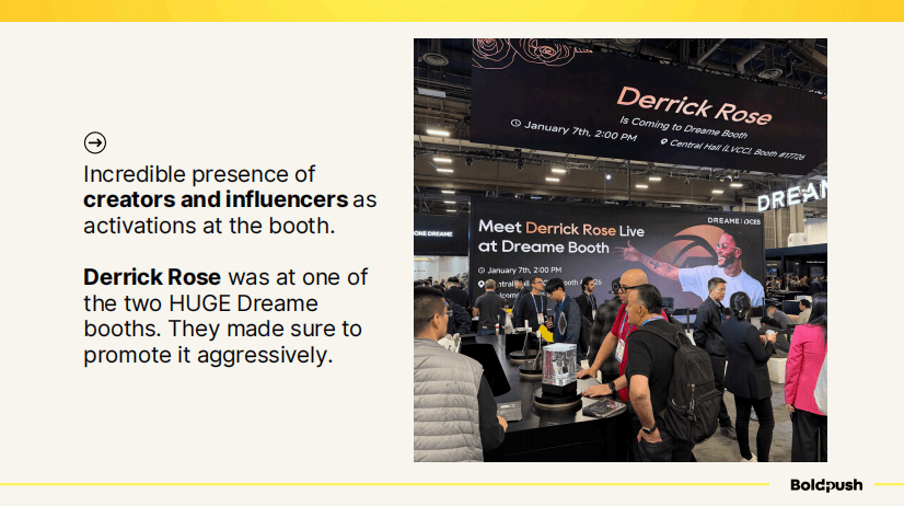 Dreame(追觅)邀请了NBA球星德里克·罗斯到场。他们在展位的大屏幕上提前多日预告这一活动,确保信息传播到位。当罗斯出现时,整个区域人山人海,所有人都举着手机拍摄。