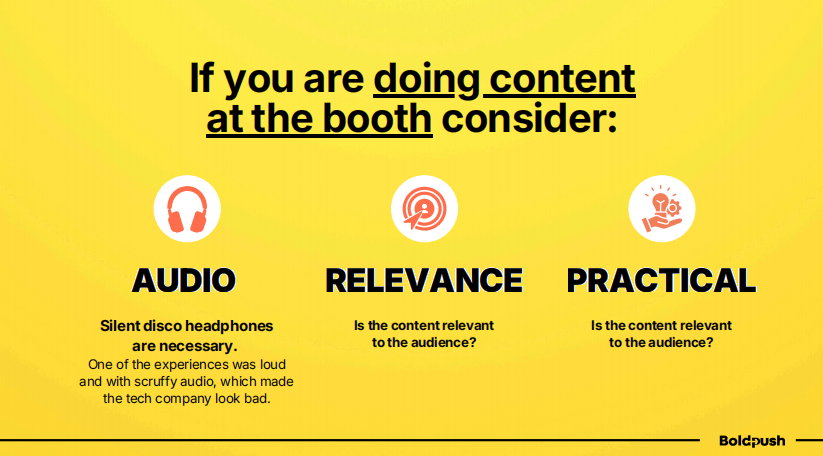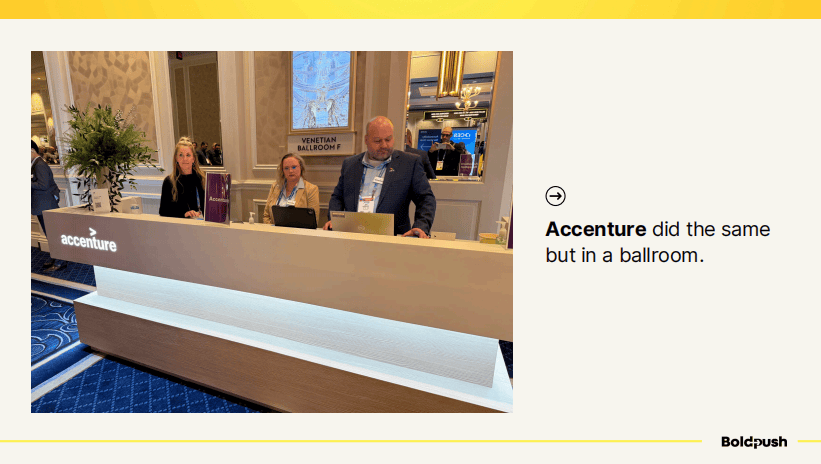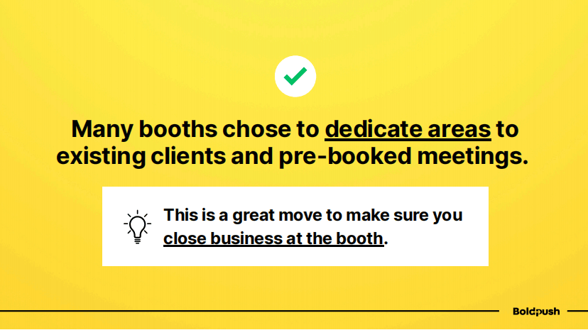 许多展位都选择将部分空间专门用于现有客户和预约会议。这是一个非常明智的做法——确保能够在展会现场直接推进业务成交。