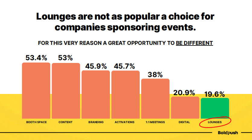 在赞助形式偏好调查中,休息区(Lounge)只占19.6%,是最不受欢迎的选项之一。但正因如此,这反而成为了差异化竞争的机会。