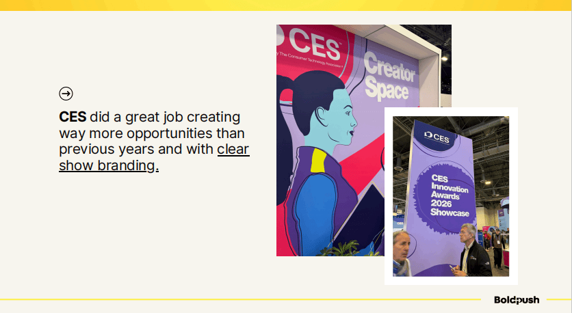 CES在这方面做得越来越好。今年他们设置了Creator Space(创作者空间)、Innovation Awards Showcase(创新奖展示区)等主题区域,不仅数量比往年多,品牌视觉也更加统一和专业。