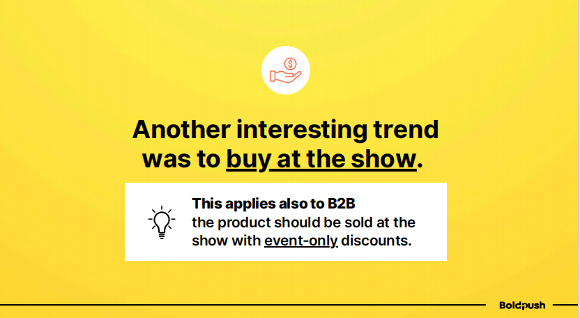 这个策略同样适用于B2B企业。 你可以提供仅限展会期间有效的特别折扣或套餐,推动客户在现场做出购买决策。