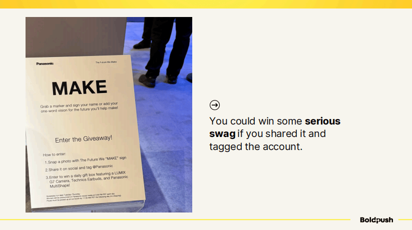 松下设计了一个MAKE标识墙,邀请参观者在上面签名或写下对未来的愿景。如果你拍照分享并标记松下官方账号,就有机会赢取包括LUMIX相机、Technics耳机等在内的大礼包。