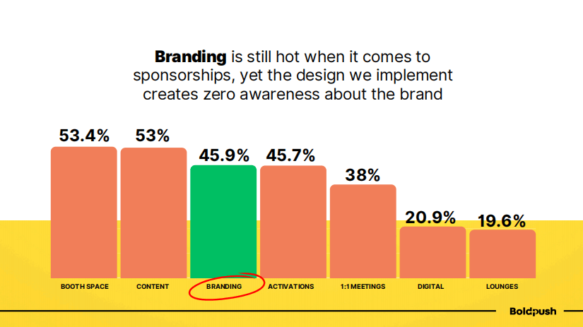 品牌露出在赞助偏好中占45.9%,热度不减。但问题是:我们投入的设计往往无法真正建立品牌认知。