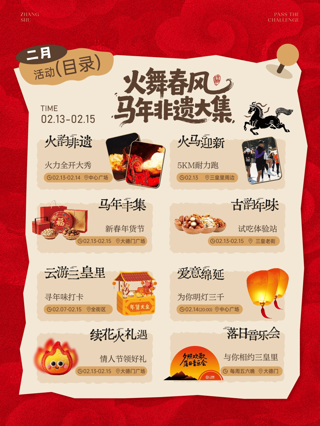“三皇里”街区年味小吃集、游园集五福活动等;樟树时代广场新春嘉年华暨物资交流会,生活用品,农副产品,特色美食,儿童游乐等促销云集。