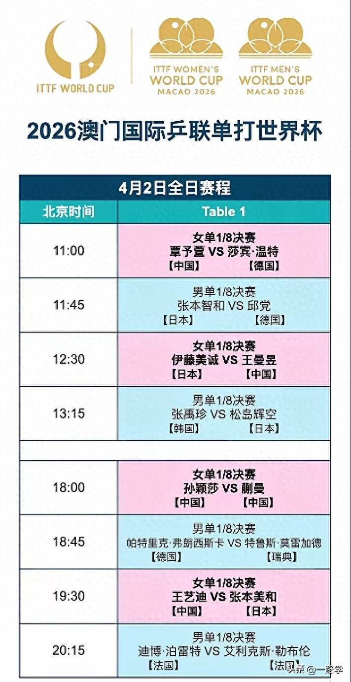 2026-04-07斗鱼,斗鱼直播,斗鱼APP,游戏直播,电竞直播,手游直播,lol直播,英雄联盟直播,dnf直播,cf直播,绝地求生直播,王者荣耀直播,二次元直播,英雄联盟,绝地求生,和平精英,魔兽世界,三角洲2026澳门国际乒联单打世界杯,小组赛刚打完,国乒女队六个人全进16强,一个都没掉队。4月2日这天,直接进淘汰赛,1/8决赛,国乒五个金花要上场,赛程早就定好,全在T1赛场,七局四胜制,打起来肯定激烈。