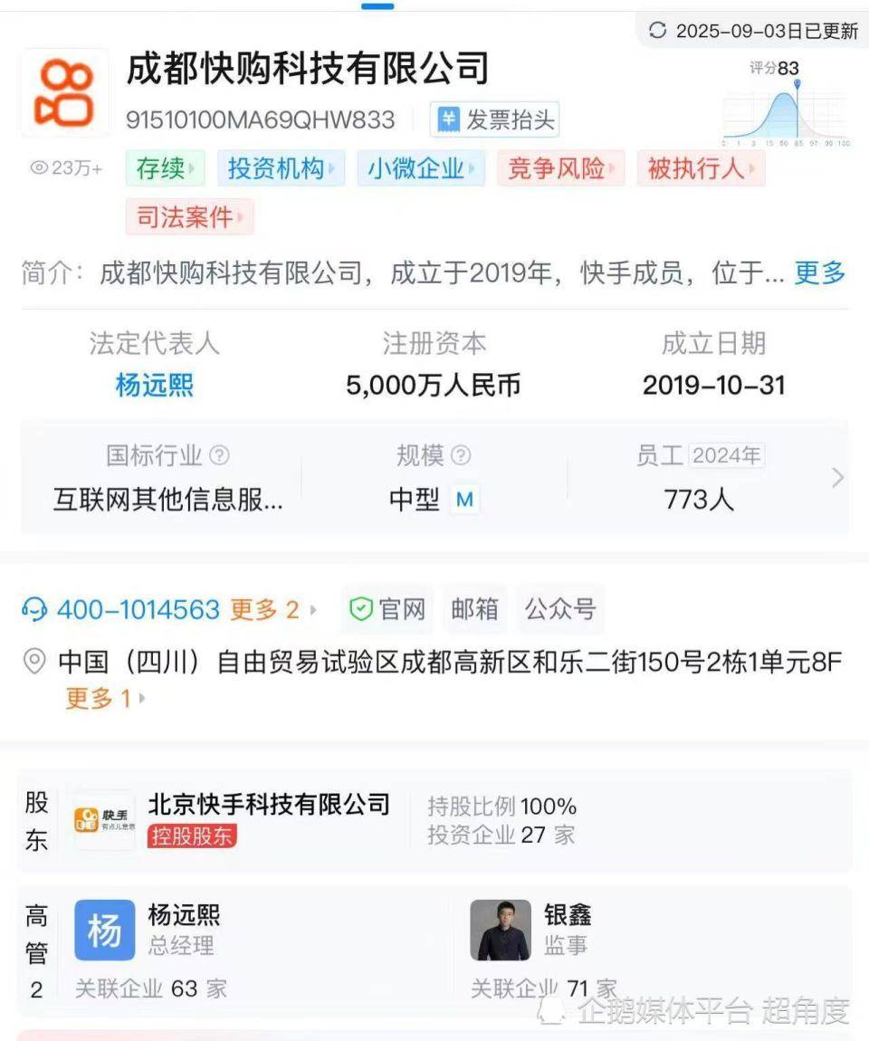 天眼查显示,该公司是快手科技全资子公司。主要运营电商交易平台“快手小店”,提供供货商入驻、服务商入驻、直播基地入驻等服务。返回搜狐,查看更多